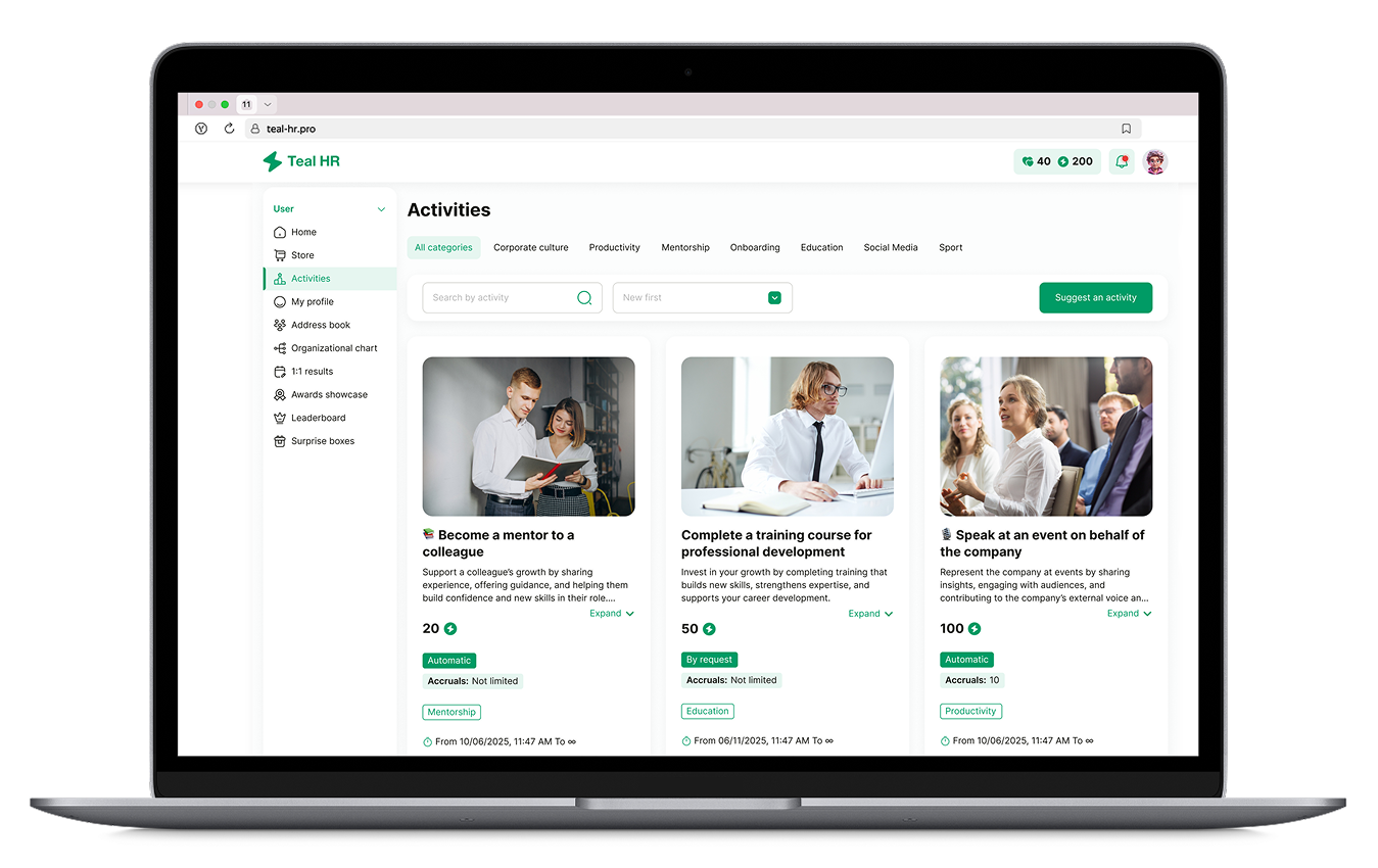 Teal HR is an employee recognition and rewards platform. It is designed to cultivate engagement, strengthen team connections, and enhance the overall company culture. Thanks to virtual coins and customizable rewards, Teal HR incentivizes employees, encourages peer recognition, and aligns individual contributions with organizational objectives.